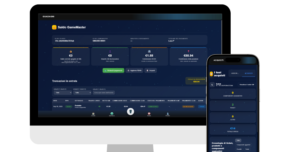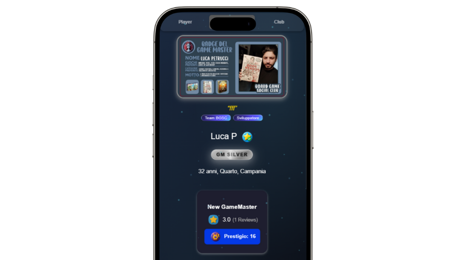 Il profilo Club è pensato per gestire eventi, community e luoghi fisici di gioco. Il profilo Partner è per chi vende prodotti o servizi (nuovi, usati, fisici o digitali). Entrambi possono essere gestiti direttamente da un GameMaster.