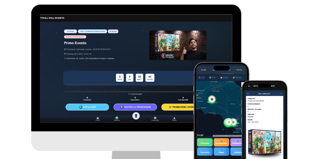 Diventa Player su BGSC e accedi gratuitamente a una piattaforma che ti connette con eventi, GameMaster, Club e altri appassionati di giochi da tavolo, di ruolo e non solo.
